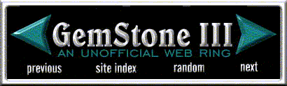 GemStone is a trademark of Simutronics Corp., all rights reserved. GemStone III is Copyright © 1987-1997 by Simutronics Corp., all rights reserved. All other product names mentioned herein are trademaks or registered trademarks of their respective companies. No infringement of these copyrights is intended, and no permission for use has been given. This site is not officially affiliated with Simutronics or Gemstone III in any way.